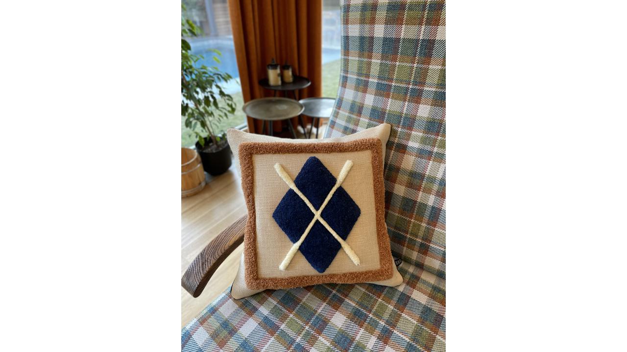 45x45 cm ölçülerindeki kırlent kılıfımızın ön yüzündeki desen tamamen el yapımıdır. Ürünümüzün ön ve arka yüzünde doğal kaliteli jüt kumaş kullanılmıştır. İçi astarlı olan ürünümüzün çevresinde kahverengi biye kullanılmıştır.